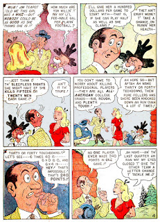 It's been a while since I've read any Boody, so I don't remember if his stories were always so leisurely paced. Maybe I expected a football-themed comedy to go faster. Too much time was spent on Pappy's jobs, and then there was as much discussion of what Babe was going to do on the field as there was action. In fact, this was a very talky action comedy, and all the dialogue didn't make the strip funnier. To me, the only laugh-out-loud part was where the football went straight through the basket. But maybe it's just me.