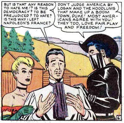Black Rider stories used the comic book template, featuring a disguised hero. In this case Black Rider is the secret identity of town physician, Dr Masters.